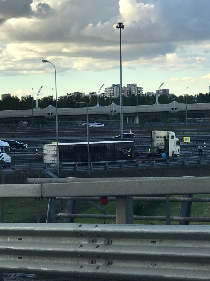 3 июля около 9 часов вечера фура перекрыла автомобильное движение на съезде с ЗСД на внешнее кольцо КАД.